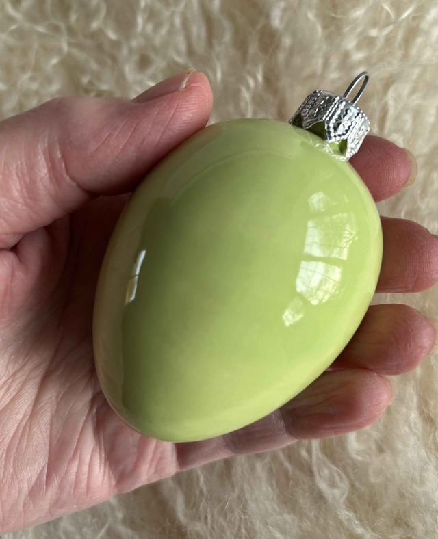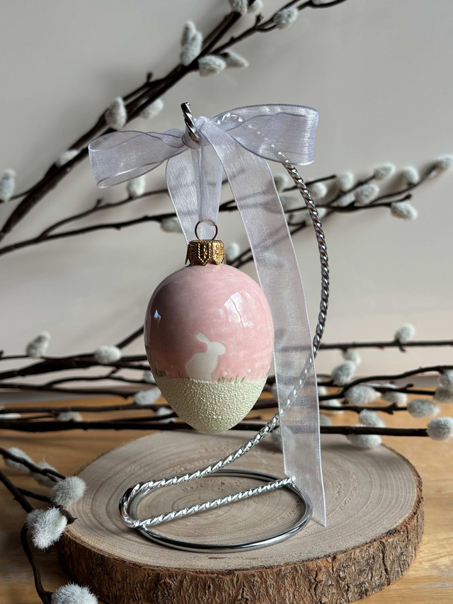 - Handmade and painted ceramic egg by Arela of Norfolk.