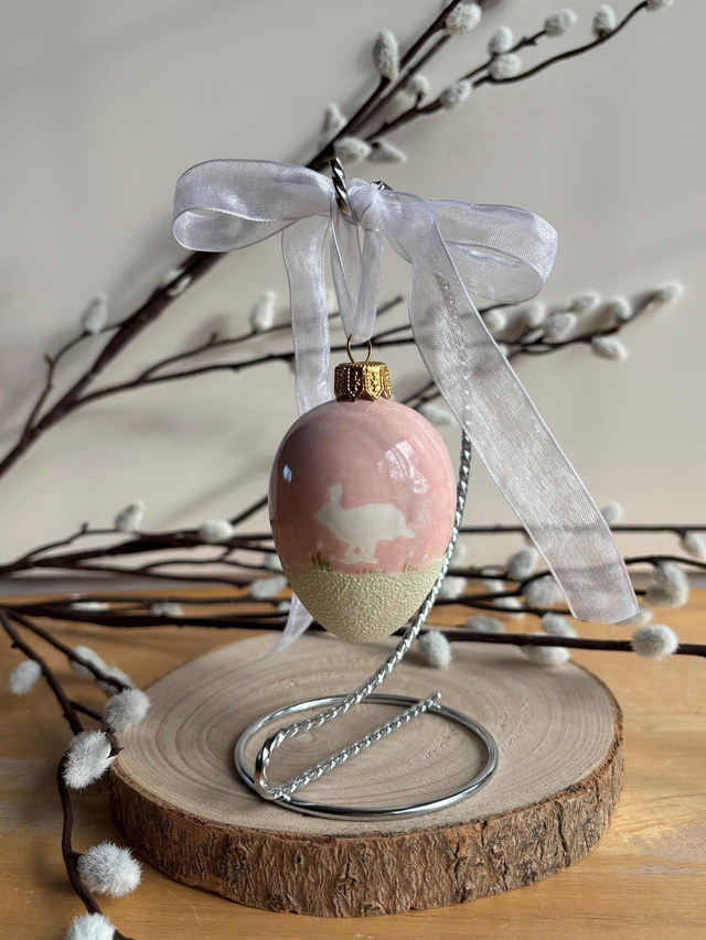 7cm Handmade Egg showing Two Hares - choice of blue or pink